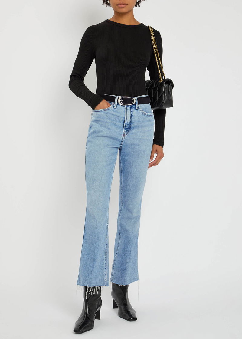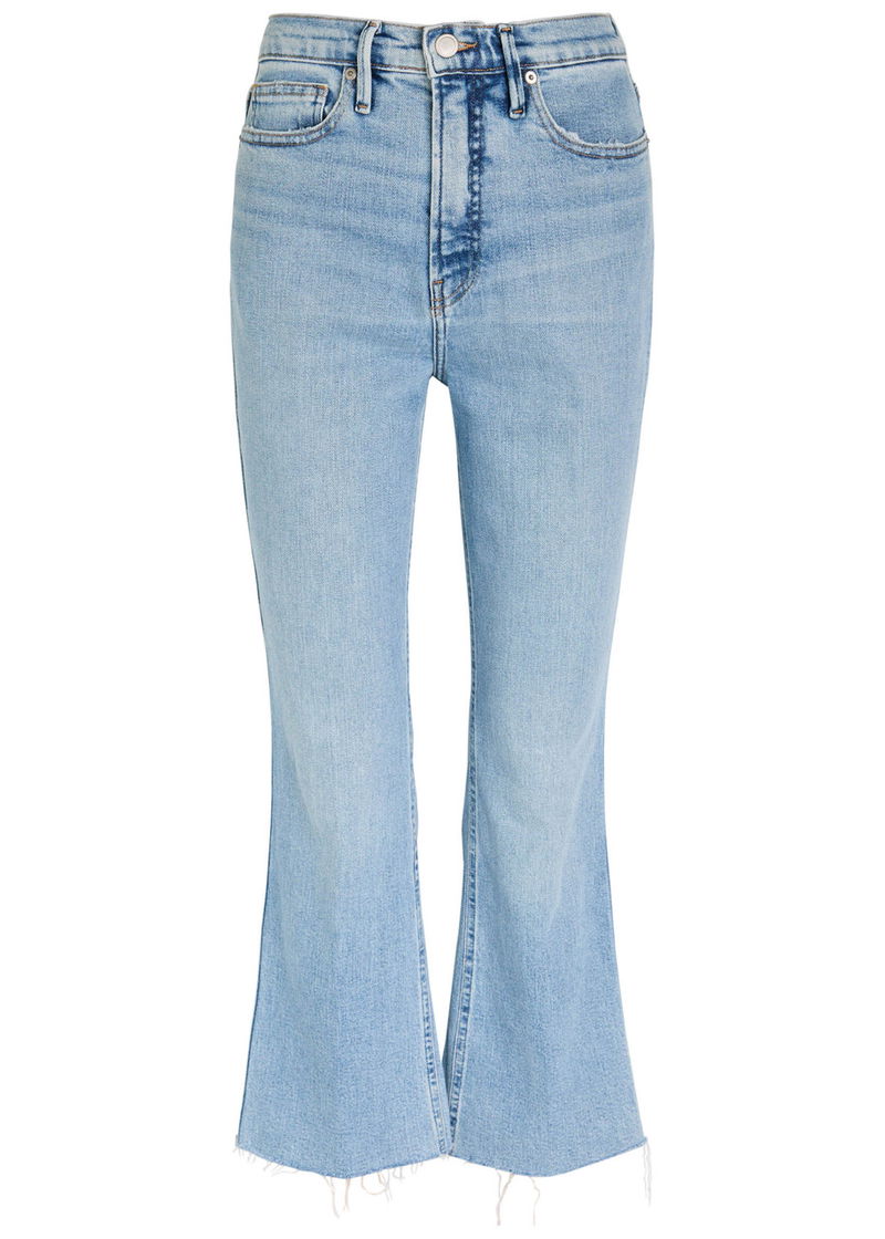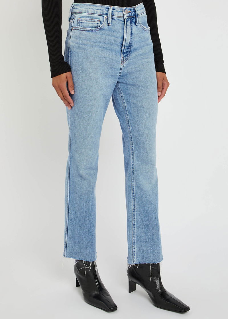 Good American designs jeans, bodysuits, swimwear and other everyday basics for women with body positivity and inclusivity in mind. Sizes run from 4 to 28, and pieces are shown on different sized models. The B-Corp certified brand was created by Khloe Kardashian and Emma Grede.