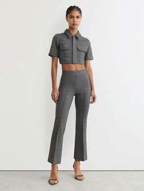 Comfort with a touch of edge. These velvet trousers feel soft and luxe, while the high-rise waist and gap-proof waistband create a smooth, flattering fit. The kick flare adds just enough movement to keep things fresh and cool. Easy to wear, yet still making an impact, they feature classic five-pocket styling and a front zip-fly closure for a timeless look. For an even more comfortable fit, they feature reinforced belt loops and a deep V yoke at the back, all with built-in tummy-smoothing technology.
