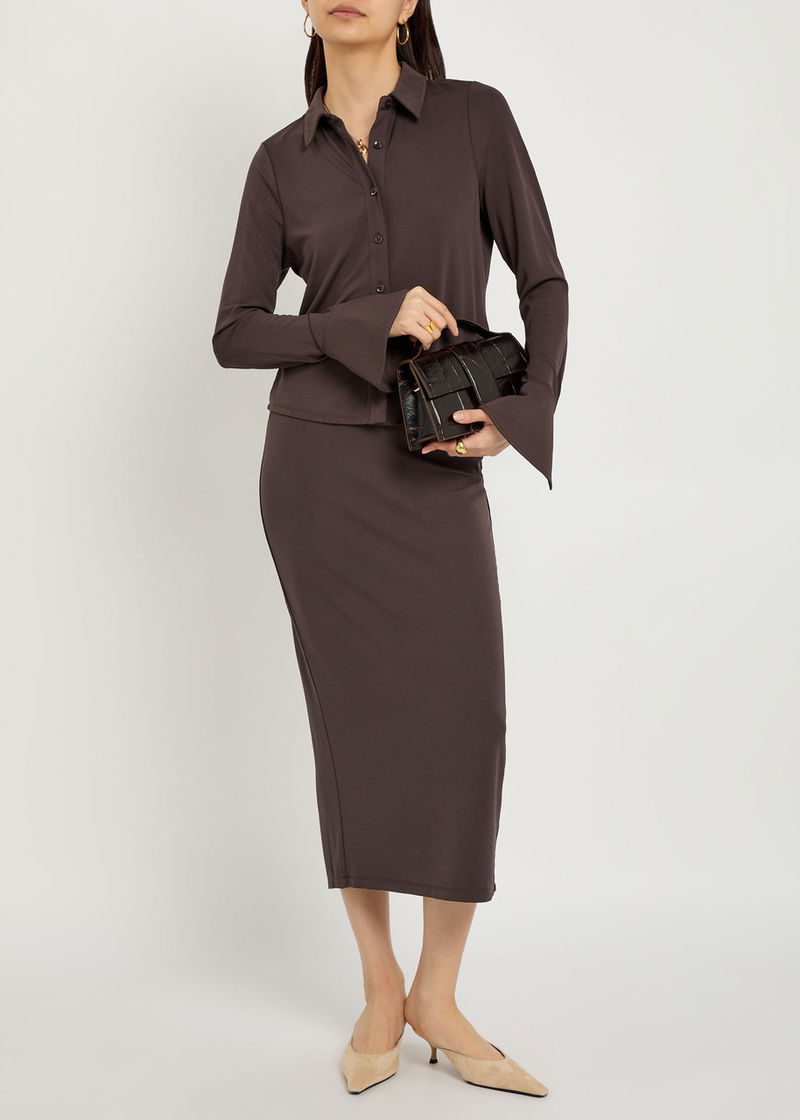 Good American designs jeans, bodysuits, swimwear and other everyday basics for women with body positivity and inclusivity in mind. Sizes run from 4 to 28, and pieces are shown on different sized models. The B-Corp certified brand was created by Khloe Kardashian and Emma Grede.
