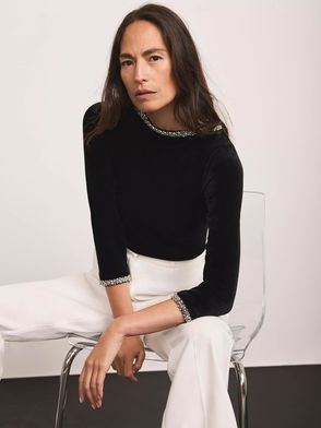 Crafted from plush velvet with a hint of stretch, this cropped top exudes elegance with its off-the-shoulder neckline and shape-enhancing silhouette. Ruching and a front twist detail add a stylish touch that effortlessly flatters curves.