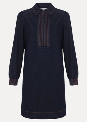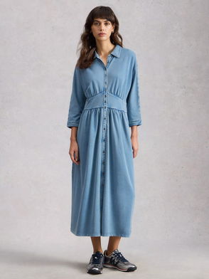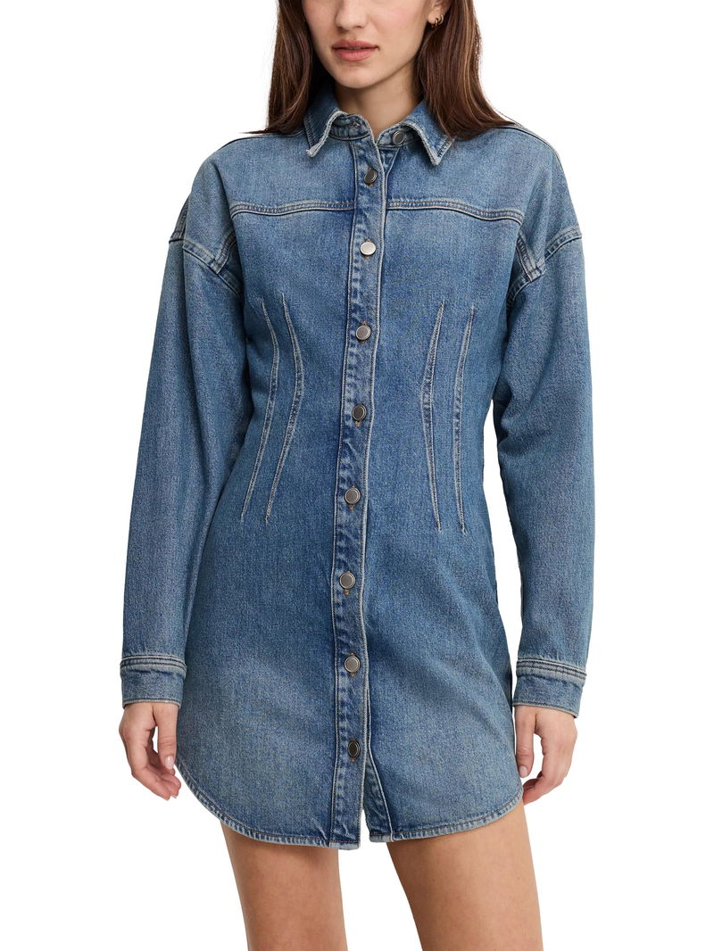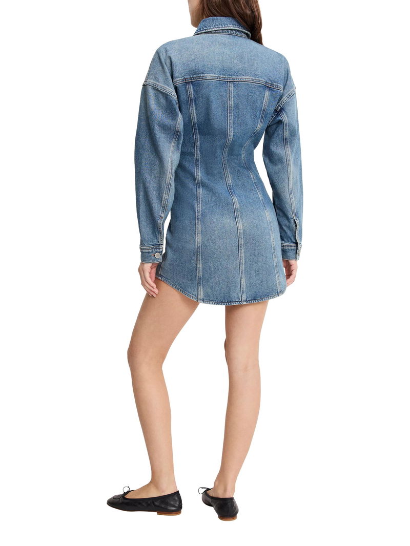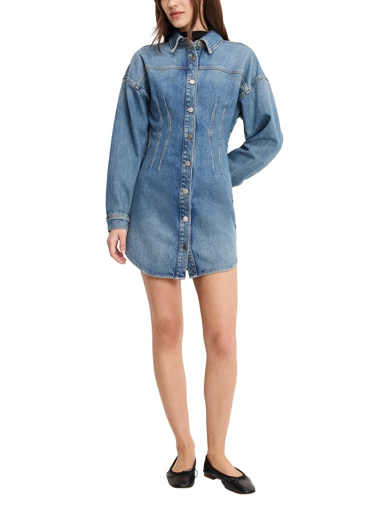 A softly shaped denim mini shirt dress by Good American. With smart buttons and long sleeves, it's a practical yet stylish choice for wherever your plans take you.