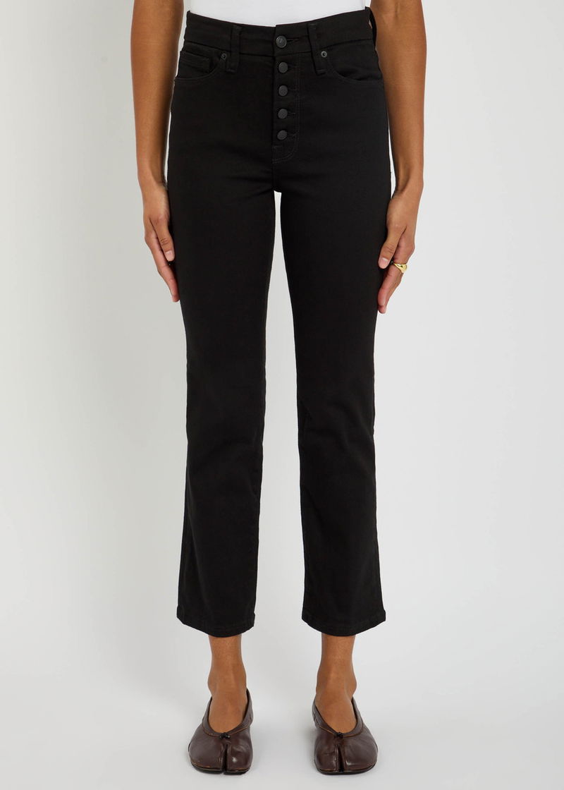 Good American designs jeans, bodysuits, swimwear and other everyday basics for women with body positivity and inclusivity in mind. Sizes run from 4 to 28, and pieces are shown on different sized models. The B-Corp certified brand was created by Khloe Kardashian and Emma Grede.