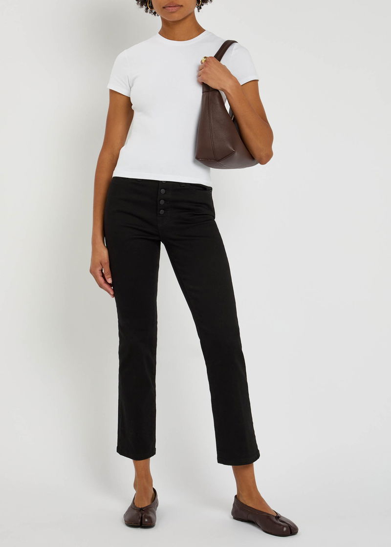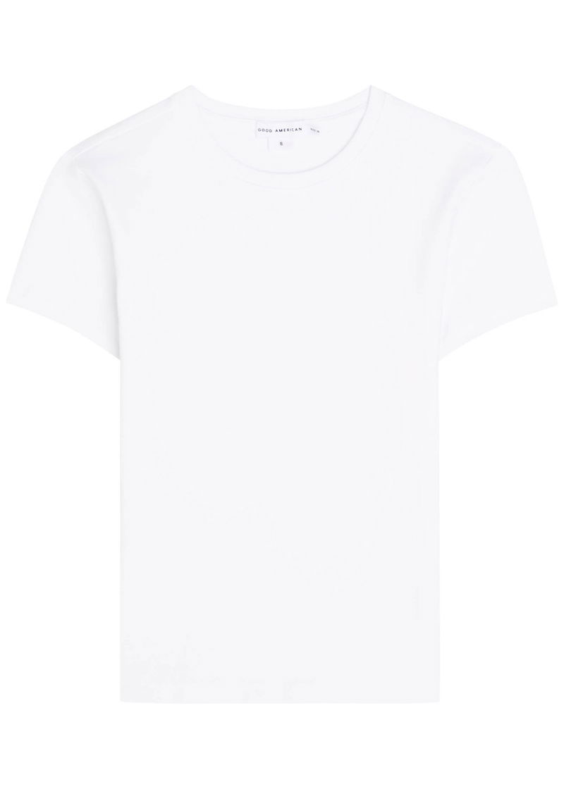 Good American designs jeans, bodysuits, swimwear and other everyday basics for women with body positivity and inclusivity in mind. Sizes run from 4 to 28, and pieces are shown on different sized models. The B-Corp certified brand was created by Khloe Kardashian and Emma Grede.