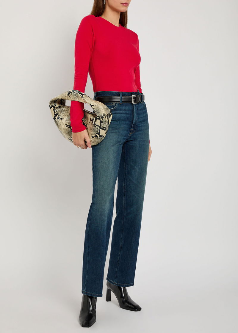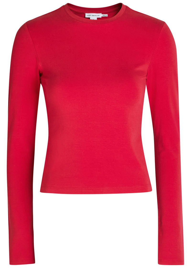 Good American designs jeans, bodysuits, swimwear and other everyday basics for women with body positivity and inclusivity in mind. Sizes run from 4 to 28, and pieces are shown on different sized models. The B-Corp certified brand was created by Khloe Kardashian and Emma Grede.