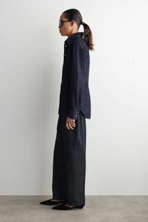 In pure, light cotton, the Darla Lightweight Denim Tie Front Top is an easy separate perfect for the warmer months. The light denim top has a loose-fitting shape and relaxed, cropped sleeves. A tie front cinches in the waist to refine the casual fit whilst keeping the silhouette simple. Master double denim by matching the top with its co-coordinating slim-fit trousers for an effortlessly cool summer outfit.