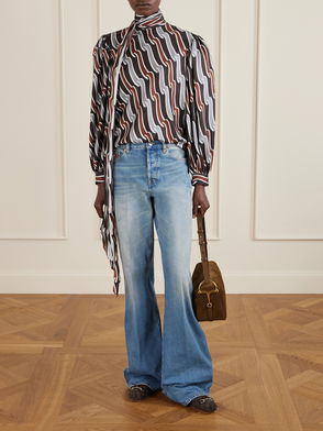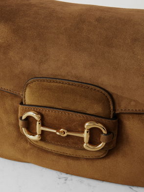 Gucci’s beige 1955 Horsebit bag is crafted to a compact cross-body silhouette, bringing a modern slant to the house’s heritage hardware. It’s made in Italy from canvas trimmed with black, subtly grained leather and features a front flap pocket and main zip compartment. Shorten the strap to wear it elegantly over the shoulder.
