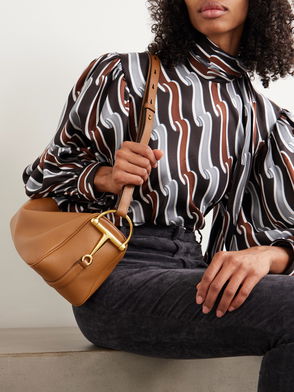 Gucci’s beige GG-jacquard 1955 shoulder bag highlights the signature gold-tone metal Horsebit chain – an equestrian-inspired feature which was introduced by the house in the 1950s. It’s crafted in Italy with brown leather trim and punctuated with hardware that bears an antiqued finish. Carry it alongside a blouse and midi skirt for a timeless everyday edit.