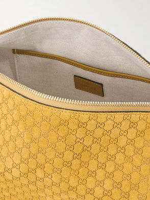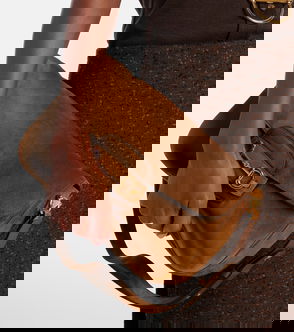 Gucci’s Alessandro Michele draws on archival house codes to create this beige 1955 Horsebit bucket bag, which is reinterpreted from a vintage silhouette. It’s crafted from the house’s iconic GG Supreme canvas trimmed with tan leather and polished gold hardware, then opens with a secure drawstring top. Note the detachable top handle for added styling versatility.