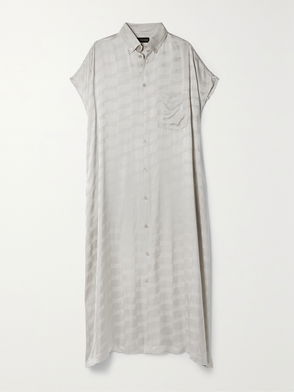 Gucci's midi dress is made from satin that's jacquard-woven with the iconic monogram. It's cut in a loose, shirt-style design with a neat collar and buttoned cuffs. The slim leather belt features the 'GG' emblem.
