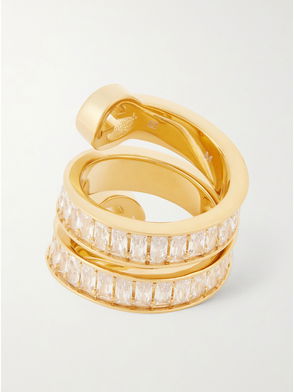 Gucci metal and faux-pearl ring. Faux pearls. Slips on. Interlocking G design, yellow-gold tone, two faux pearls, polished finish.