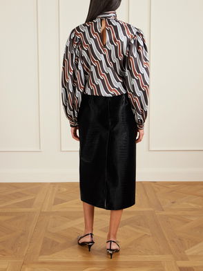 Concealed hook-and-eye and zip fastening at side. Structured waistband, slip pockets at sides, branded hardware, all-over graphic pattern, fully lined.