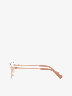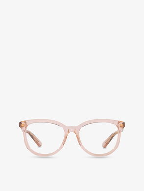 Gucci evokes a sense of playful allure with these pink enamelled-metal sunglasses. They're crafted in Italy with a cat-eye frame accented by gold-tone metal logos at the temples, then set with pink tinted lenses. Wear them to bring a subtle retro note to city or beach ensembles.