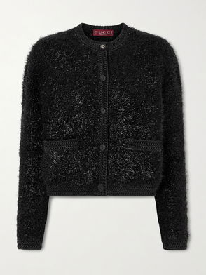Showcase your devotion to Gucci with this cotton-blend cardigan. Trimmed and illuminated with with interlocking GG monograms in golden lamé threading, it's cut to a relaxed fit. The versatile piece will style with your favorite jeans and glossy slip dresses alike.