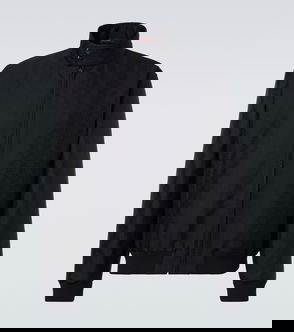 Gucci leather jacket. Concealed zip fastening at front. Regular fit, crew neck, long sleeves, striped cuffs, embossed branding and two jetted pockets at front, all-over smooth leather, contrast knitted texture at back and sleeves, partially lined, ribbed trims.