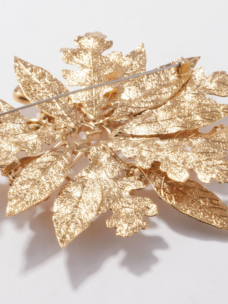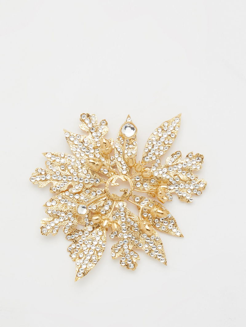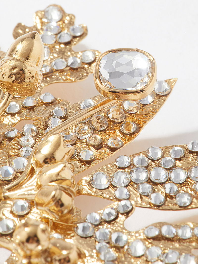 Gucci takes inspiration from the natural world for its jewellery collections, evident in the textured leaf and acorn design of this gold-tone crystal-embellished brooch.