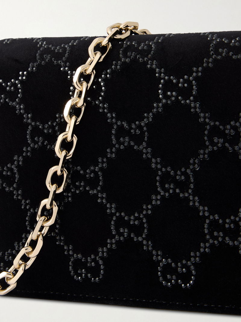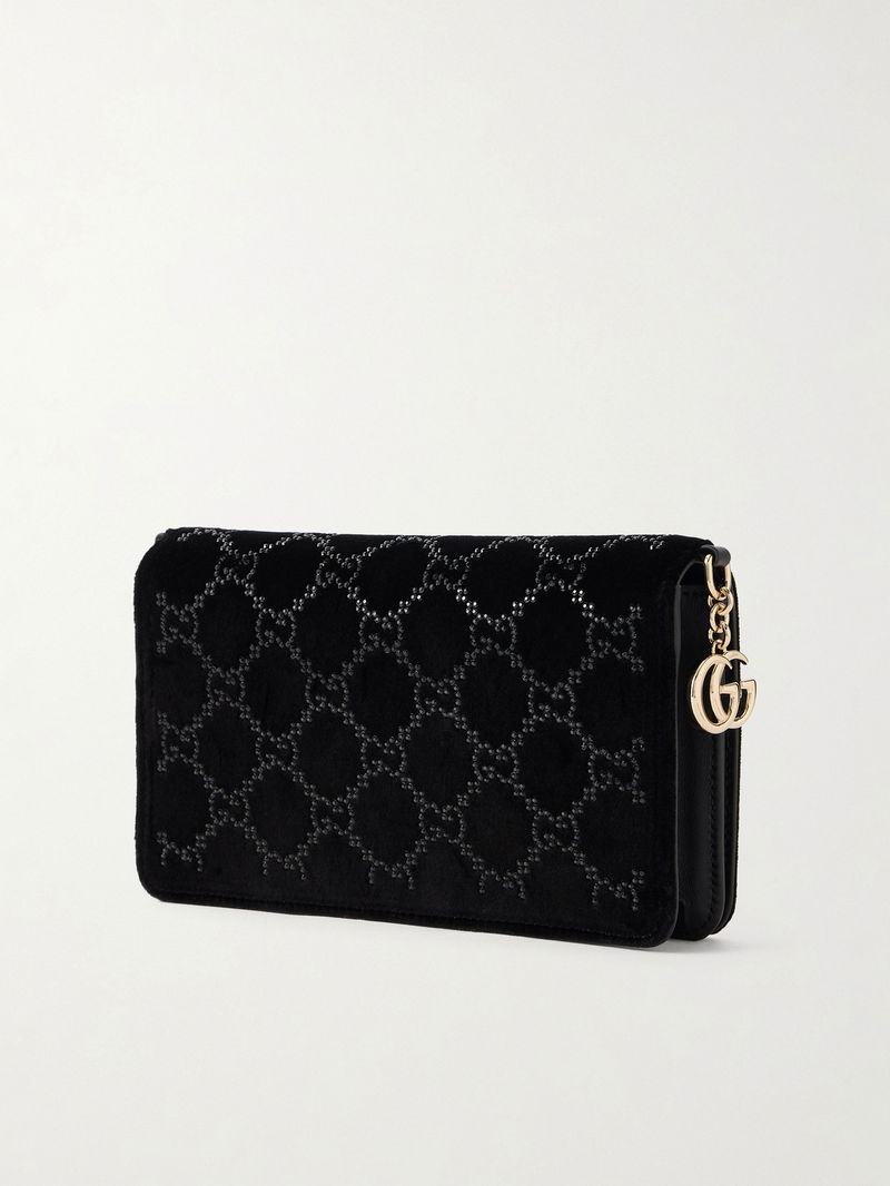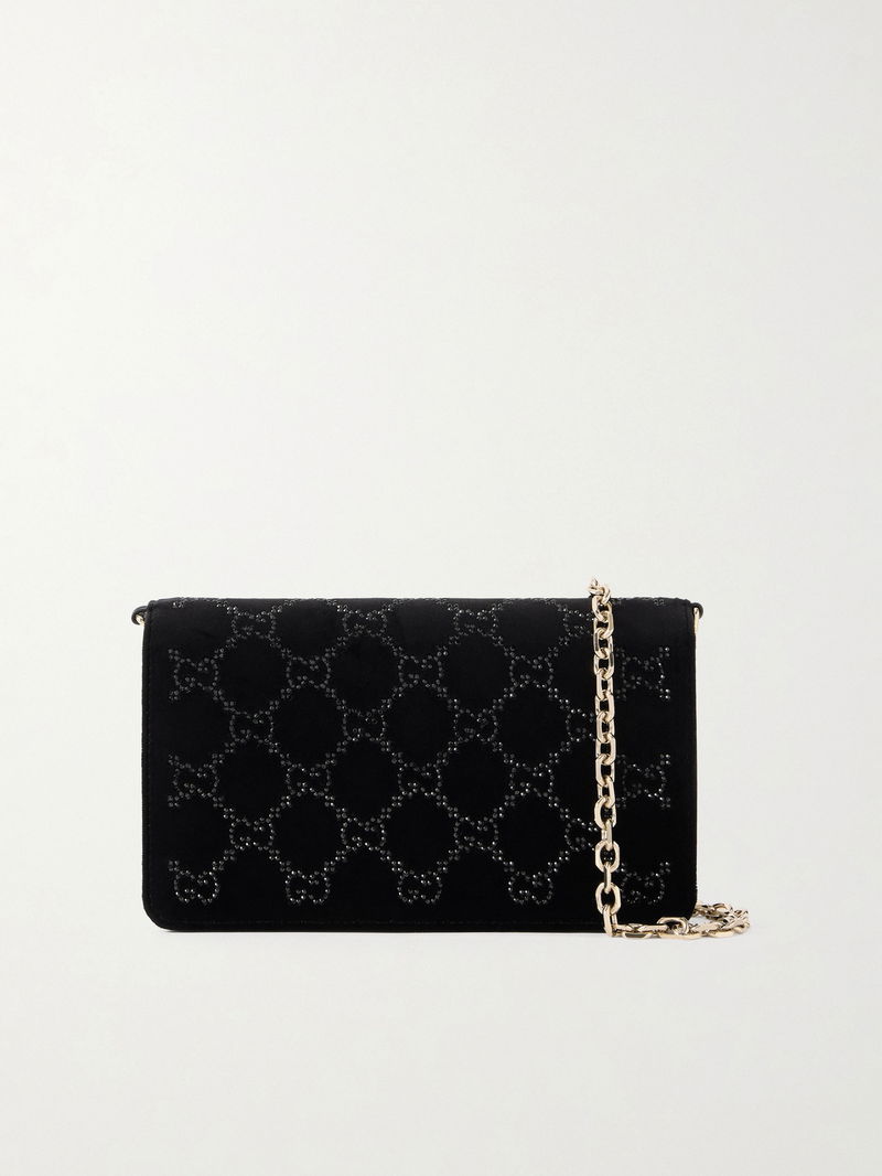 Crystal-embellished Velvet And Leather Shoulder Bag