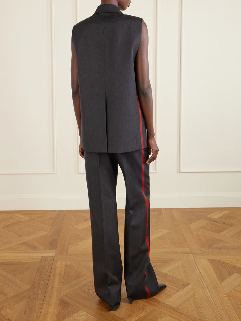 Gucci reinterprets timeless tailoring with this vest. It has been cut in Italy from wool and features a double-breasted shape with signature stripes running along the sides - a nod to the house's heritage. Layer it over a crisp shirt or fine sweater.