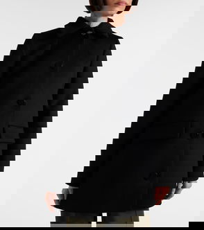 Gucci’s wool jacket is made in Italy with a buttoned front and flap pockets. The tailored silhouette is finished with buttoned cuffs and a signature Double G button at the collar for a subtle house detail.