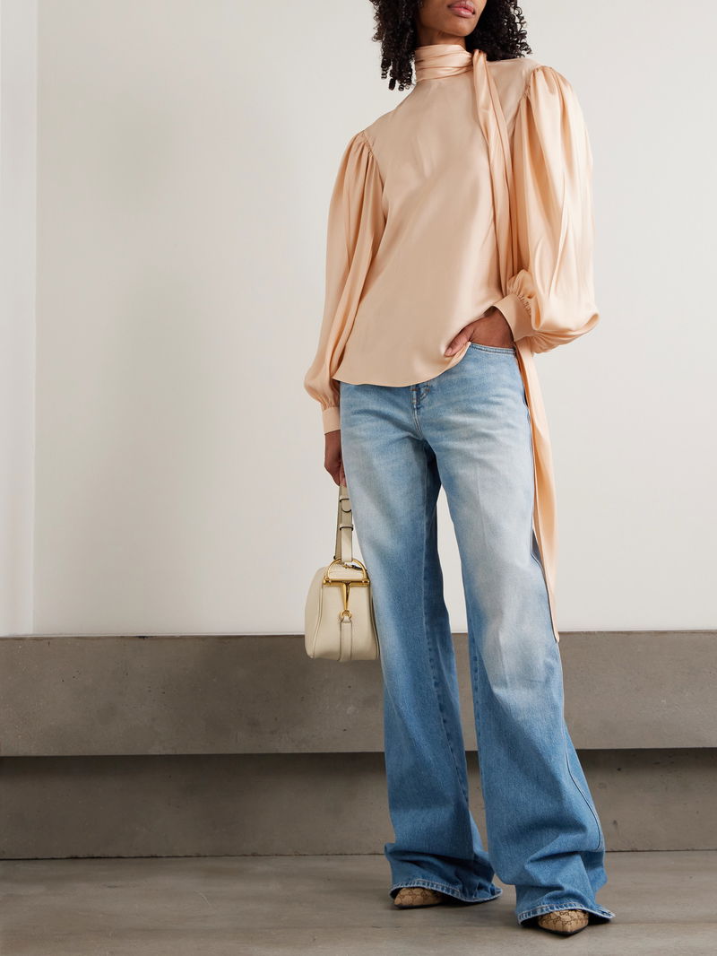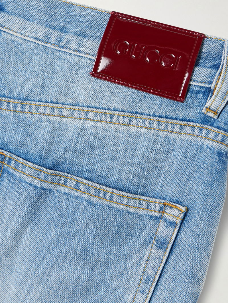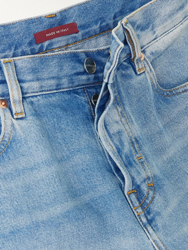 Gucci's jeans are detailed with a silver-tone horsebit on the coin pocket, which pays homage to the brand's equestrian heritage.