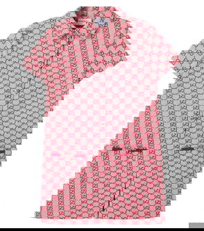 Regular fit, collar, short sleeves, all-over monogram embroidery, flared hem