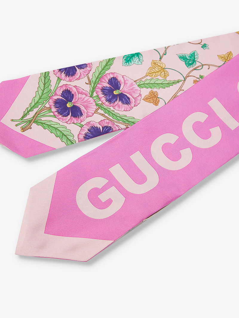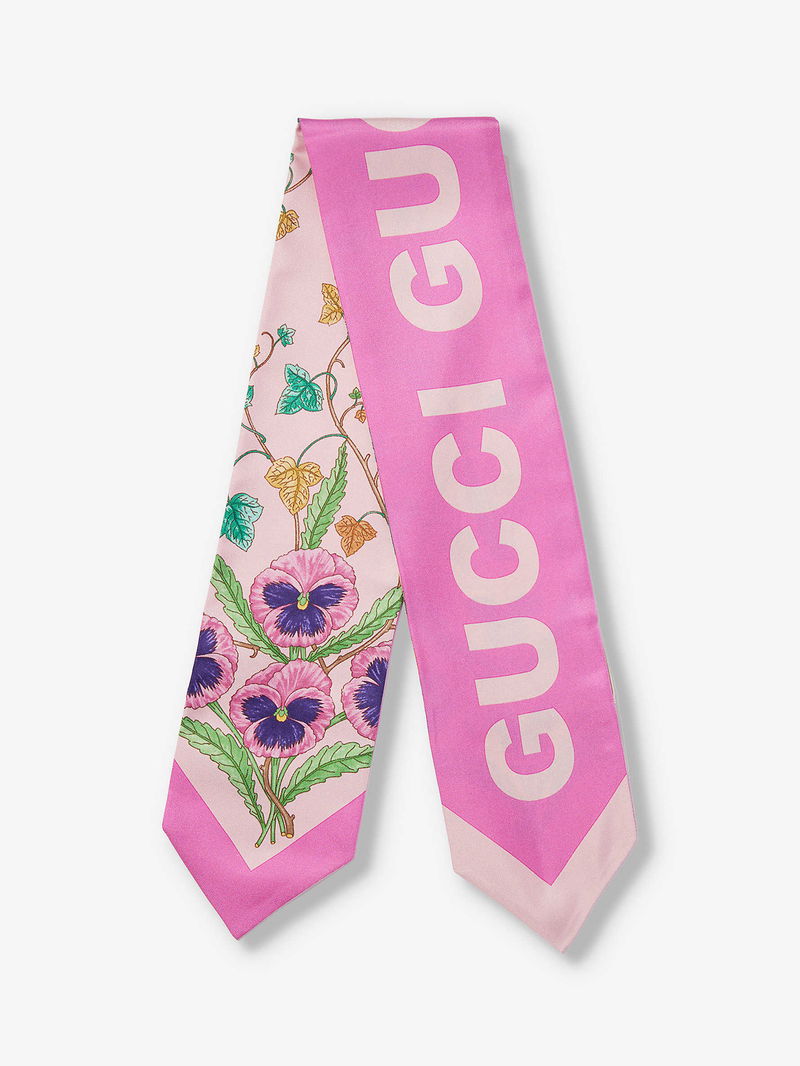 If you can’t travel to the fairytale city of Florence and wander through the Gucci garden in the historic Palazzo della Mercanzia, you can always turn to the label’s accessories collection to bring the magic to you. The latest bloom spotted sprouting across the house’s eccentric hive of designs? That would be the poetic pansy, entwining across this silk scarf in sunlit bouquets interlaced with ivy. Cut to a classic silhouette, it’s framed with the label’s distinctive lettering tracing along the back.
