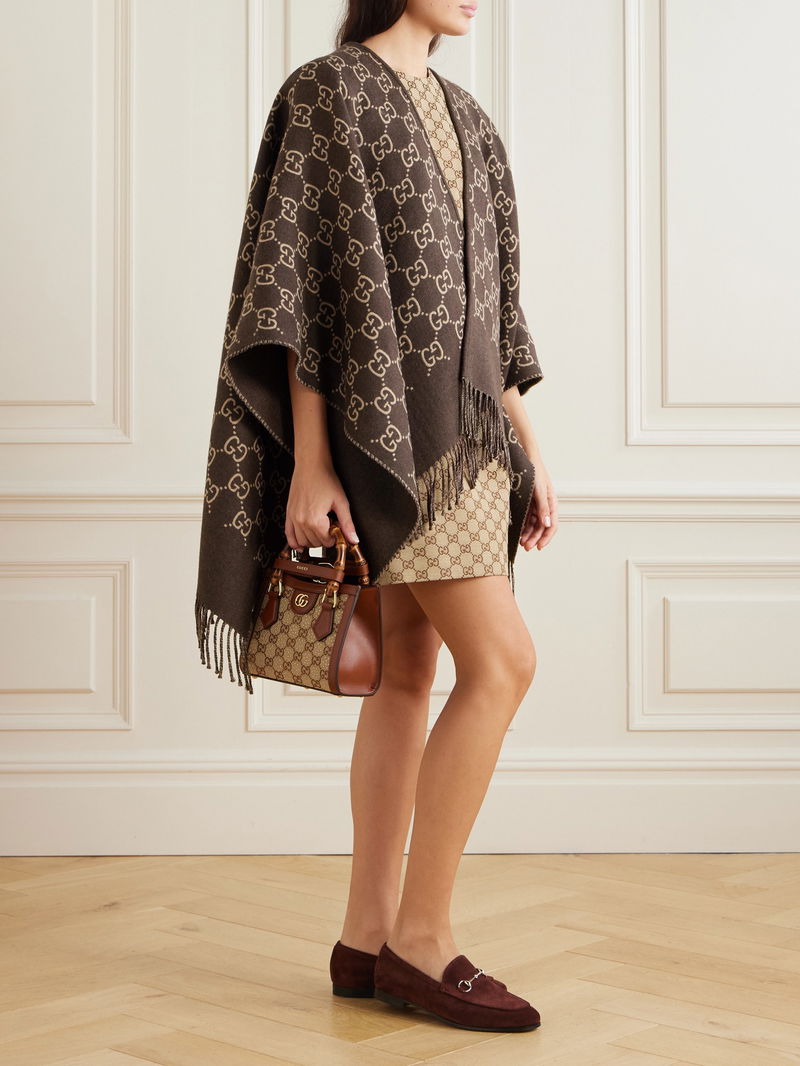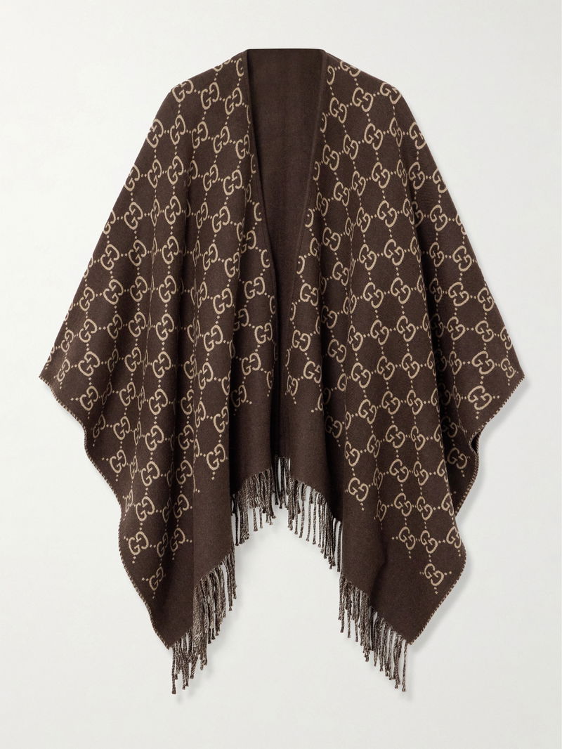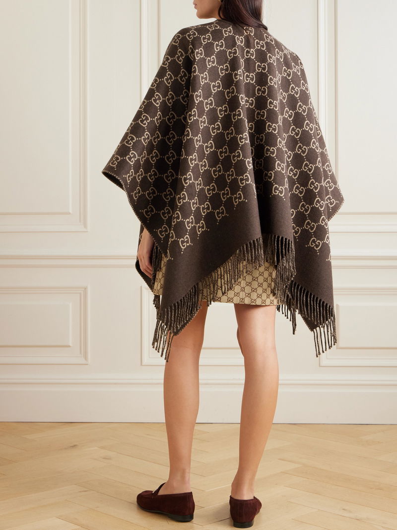 Gucci’s wrap is such a chic way to keep warm. It’s jacquard-knitted from wool with the archival ‘GG’ motif and trimmed with swishy fringing – adding a touch of drama to your look.