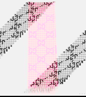 Choose fuzzy accessories form Gucci to keep you warm during the cold season. Knitted from a plush alpaca and wool blend, this scarf is printed with the house's GG motif.