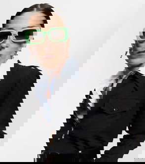 Alessandro Michele riffs on retro codes to create these striking gold-tone metal sunglasses for Gucci. They're crafted in Italy with square frames and figaro-chain style arms that suspend detachable GG acetate charms. Wear them to capture the house's fascination with reworking 1970s tropes.