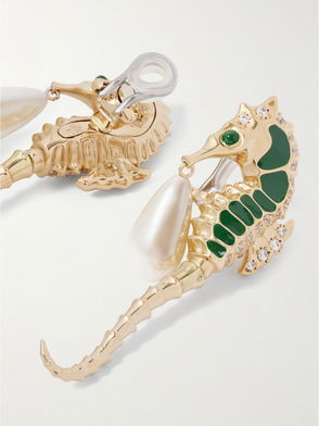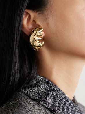 Gucci strikes an opulent mood with these gold-tone brass drop earrings. They’re made in Italy with the iconic GG motif embellished with crystals, then suspend large oval-cut stones with an antiqued setting that gives the look of a vintage heirloom. Choose them as an elegant accent to a minimalist dress.