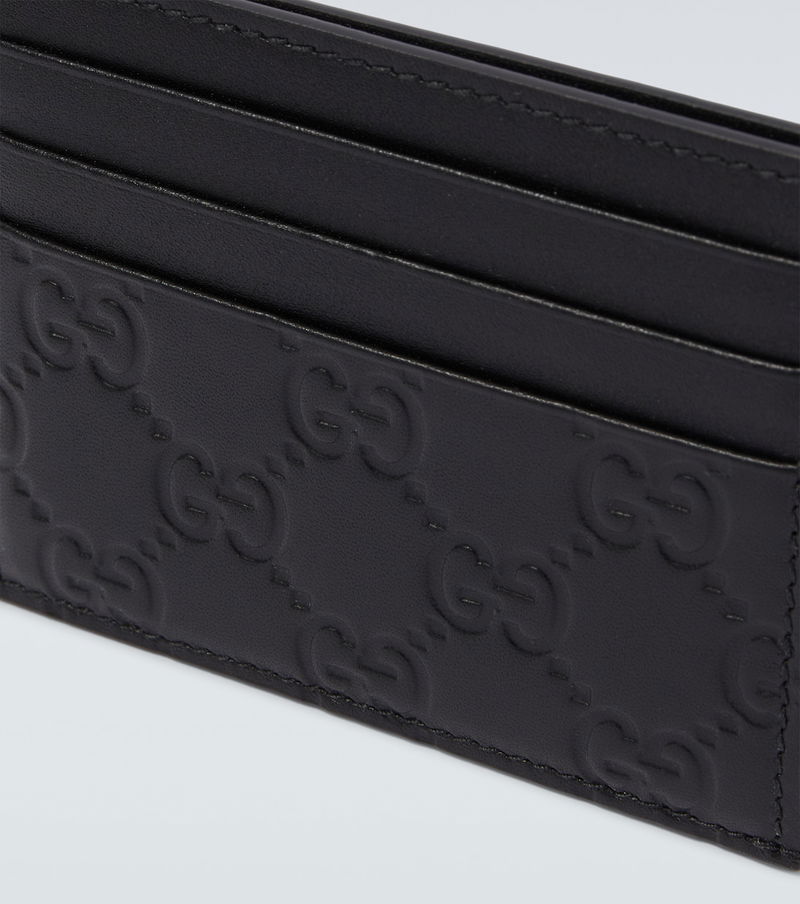 Embrace on-the-go sophistication with this card holder from Gucci. Crafted from GG-embossed leather, this sleek design features six card slots.