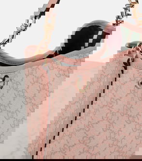 Gucci's petite bucket bag is made from monogrammed coated-canvas and has leather trims and a striped twill lining. The internal pouch divides it into two separate compartments to keep your phone, cards and glasses within easy reach.