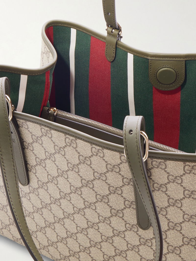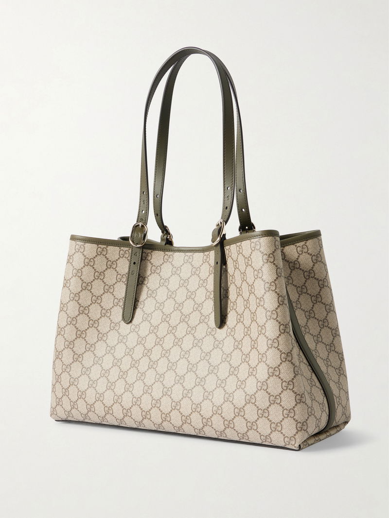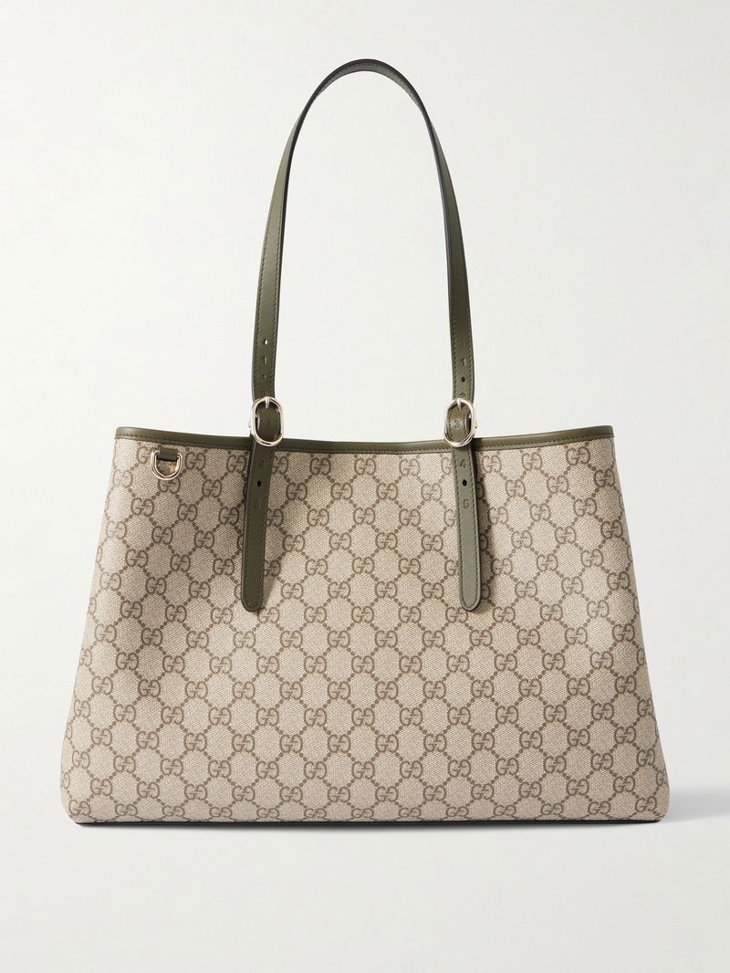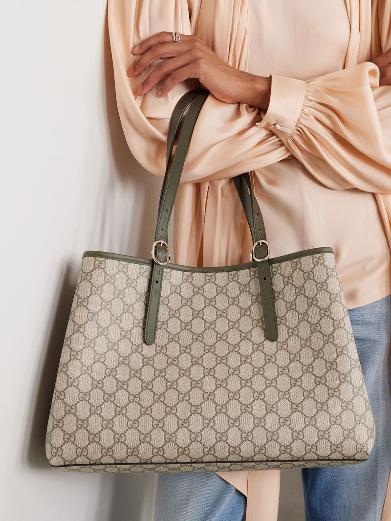 Gucci's 'GG Emblem' tote has a spacious interior centered with a zipped pocket to keep everything neat and organized. It's made from the brand’s iconic monogrammed coated-canvas and trimmed with contrasting leather throughout.
