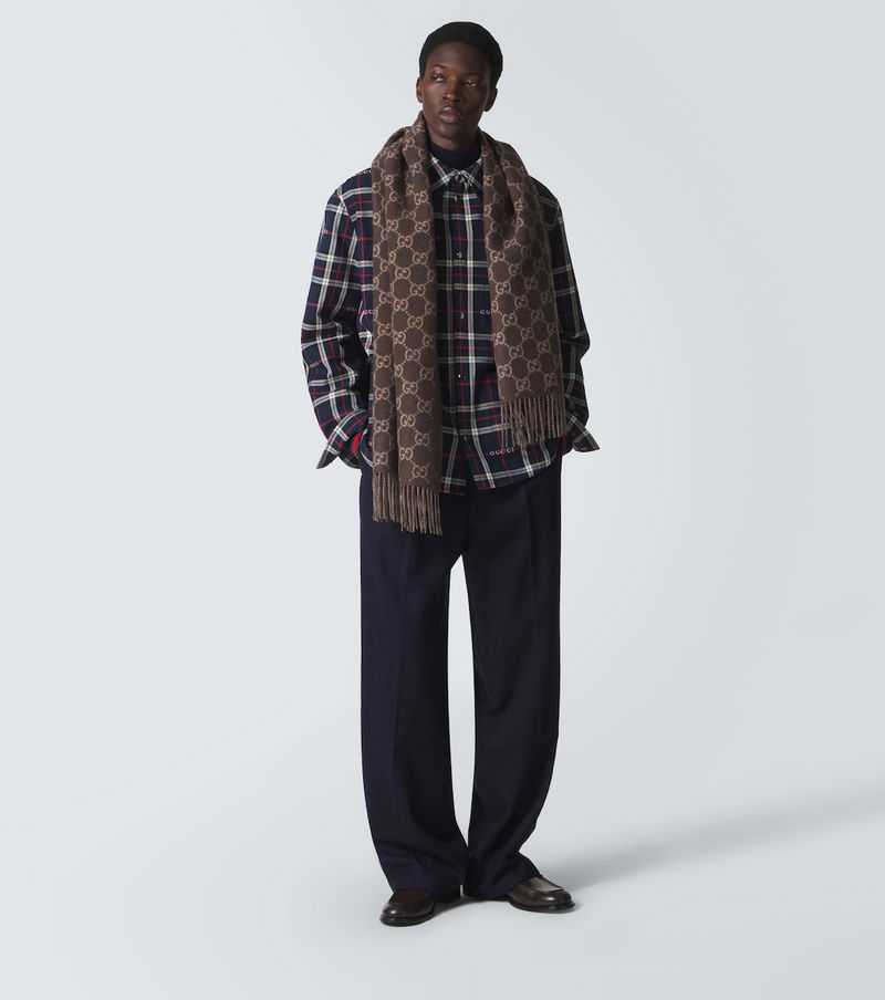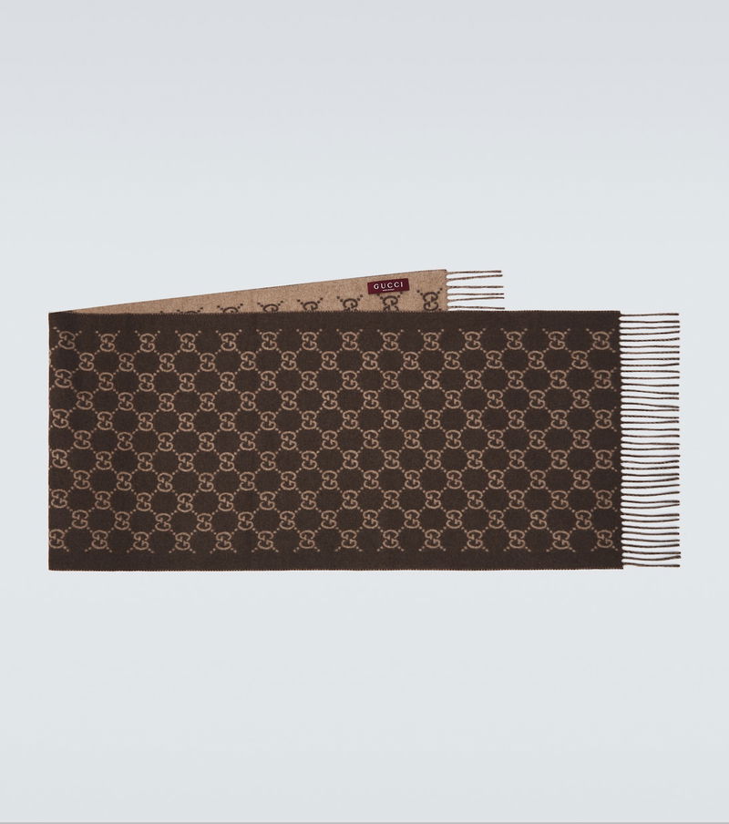 This Gucci scarf will be your favorite accessory for the cold season. The piece is crafted from pure cashmere and finished with fringed hems and the signature GG pattern, an iconic emblem of the Italian maison.