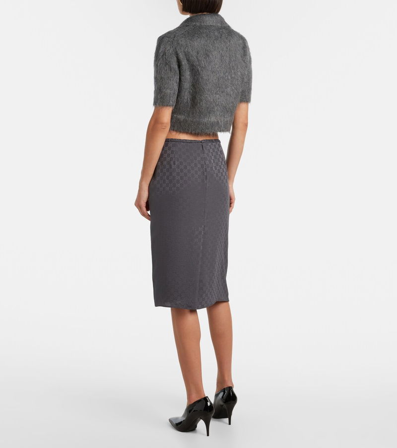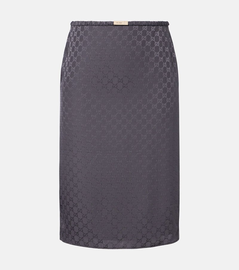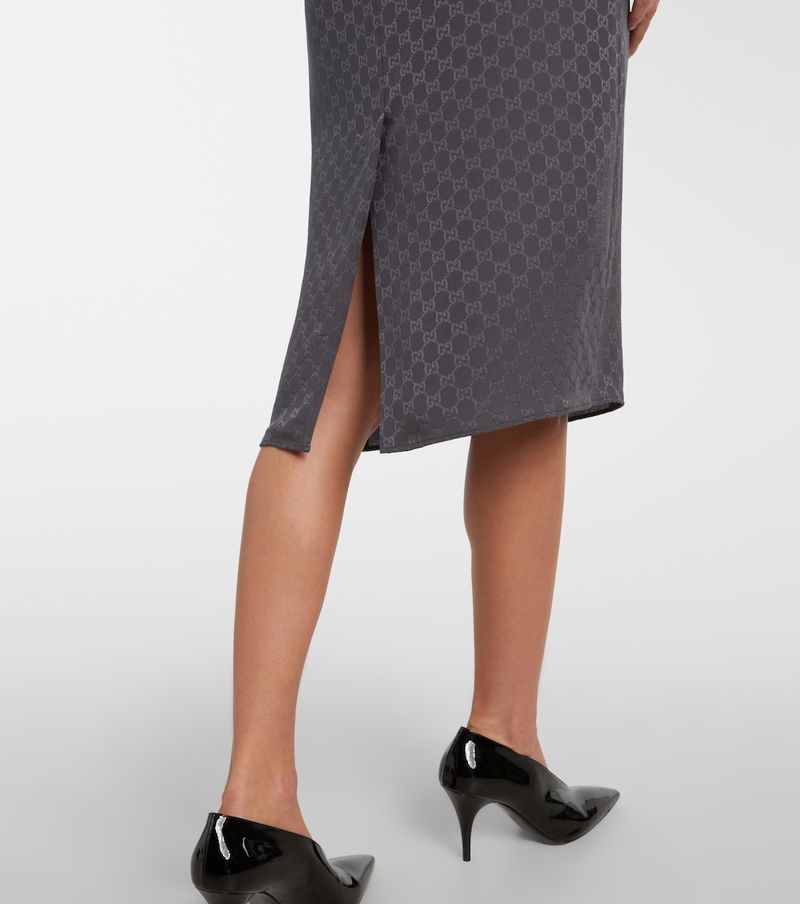 An iconic name within fashion on a global scale, Gucci was founded in Florence in 1921. This pencil skirt is made in Italy from silk to a low-rise midi silhouette with a GG pattern.