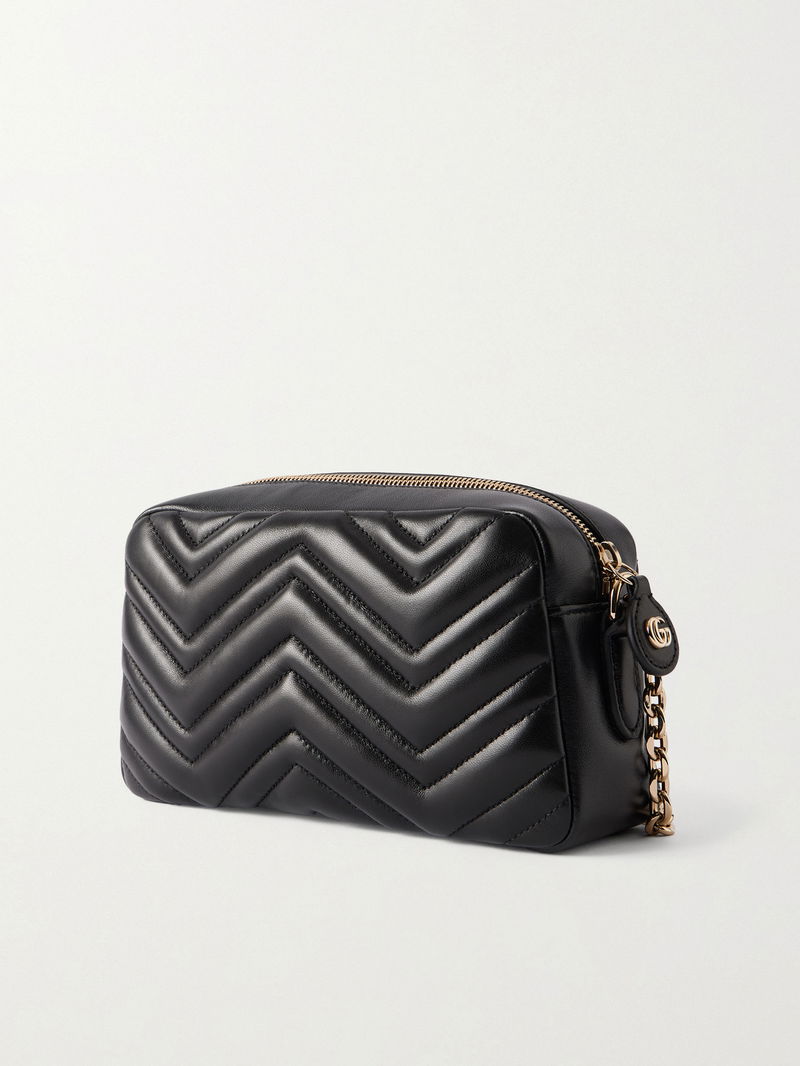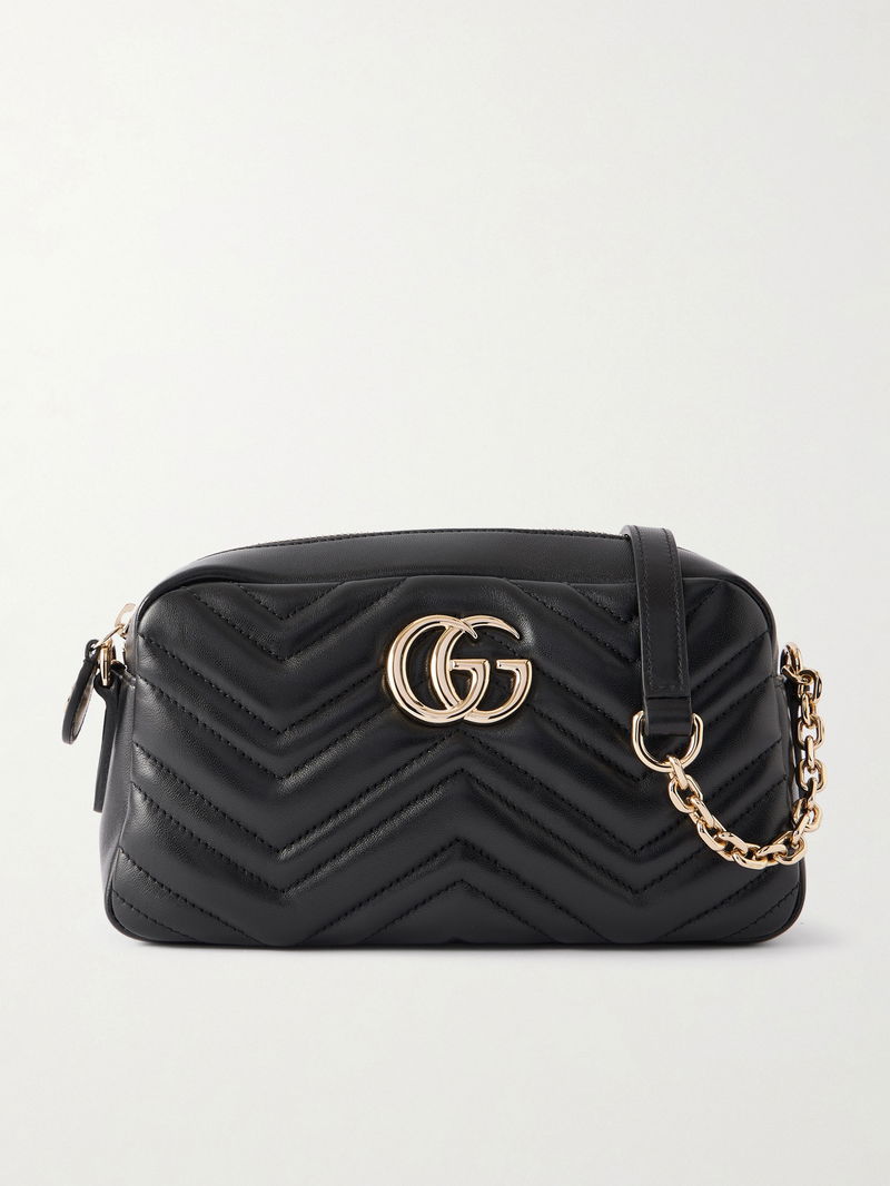 The interlocking 'GG' hardware on Gucci's bag is inspired by a '70s belt buckle from the brand's archives. This quilted style is made from leather and has a chain-trimmed strap that you can carry cross-body. The faille-lined interior is spacious enough to carry a compact, wallet and keys.