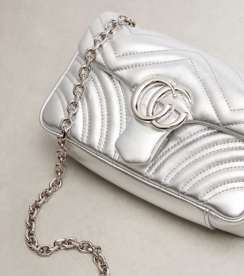 Let Gucci's GG Marmont shoulder bag be the focal point of your ensembles. Made from metallic leather with quilting throughout, the design comes with a detachable chain shoulder strap.