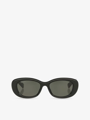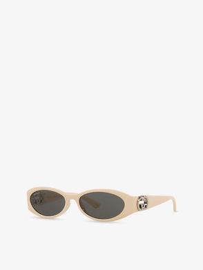 An iconic fashion house for over 90 years, Gucci's Italian style and unique approach to luxury has earned it a sought after reputation. Designed with a wide oval frame for a striking silhouette, these innovative Italian-crafted sunglasses are defined by their 'GG' logo and star-embellished arms, and finished with gold-toned bee tips.