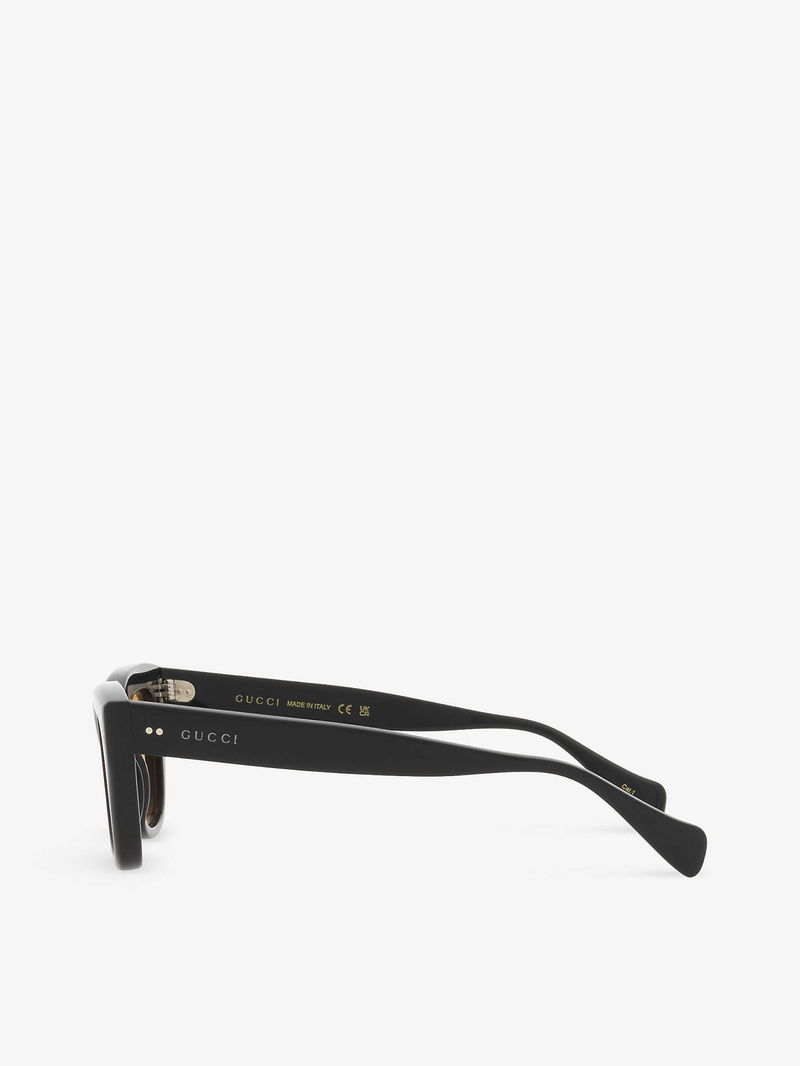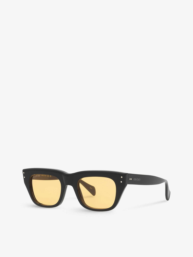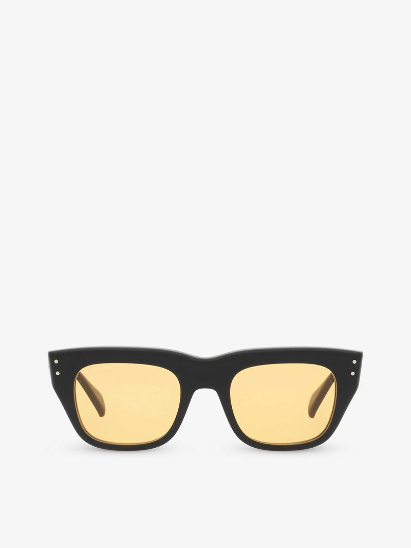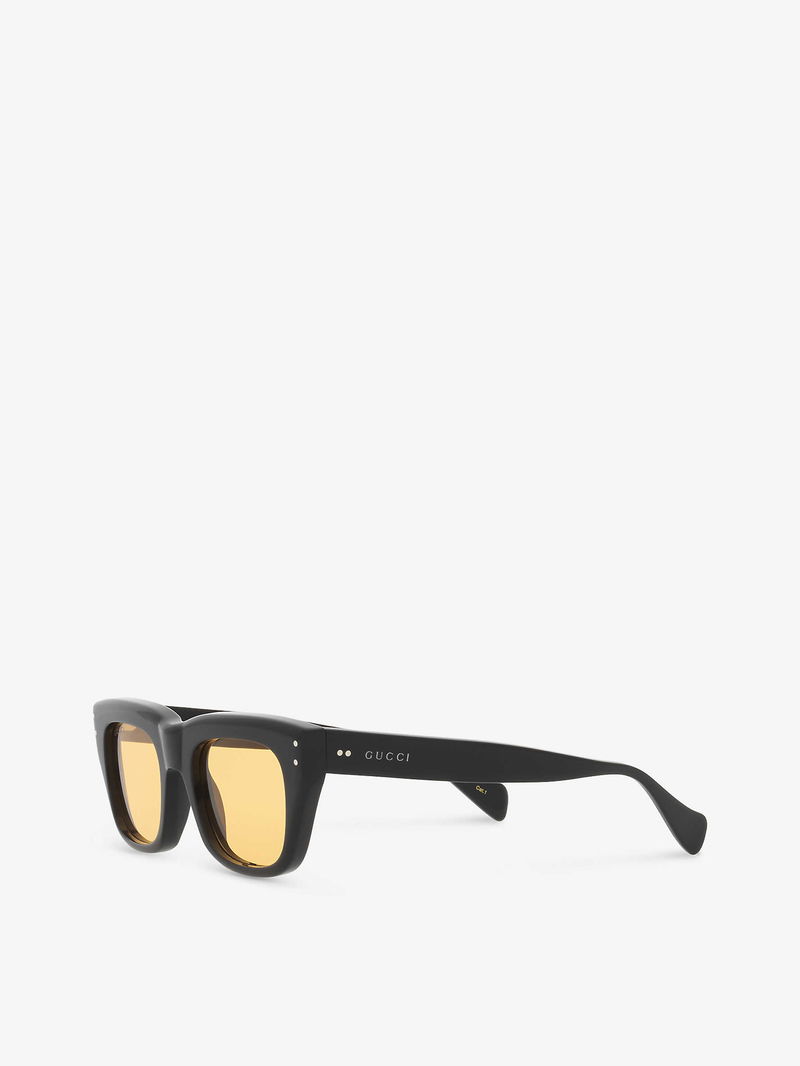 Gucci acetate sunglasses. Rectangle frame, branding at arm, tinted lenses. 100% UV protection.