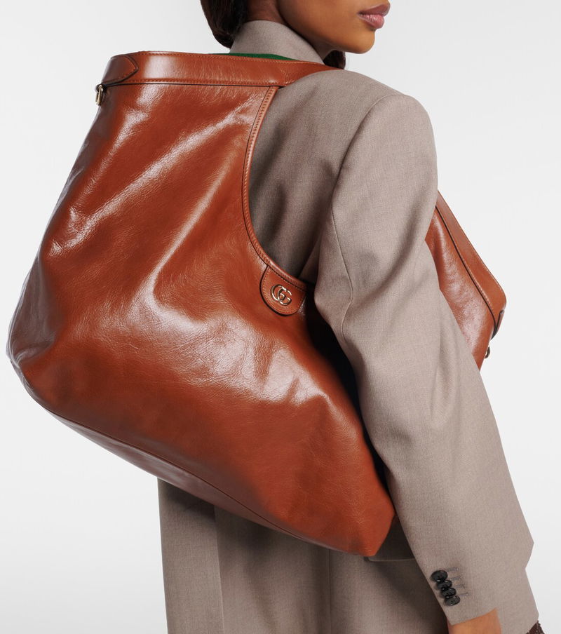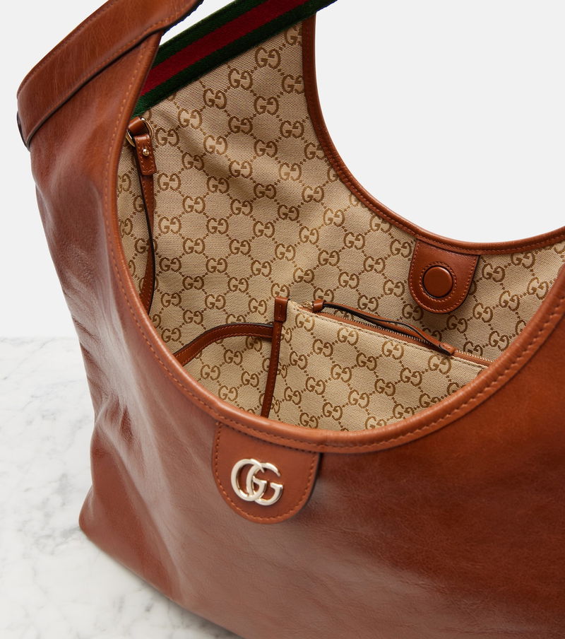 Gucci's collections often reimagine historical elements from the brand's archives. The Gucci Giglio Large tote bag is Italian-crafted from leather with signature Double G hardware, a GG Canvas lining, and iconic Web Stripe trim.