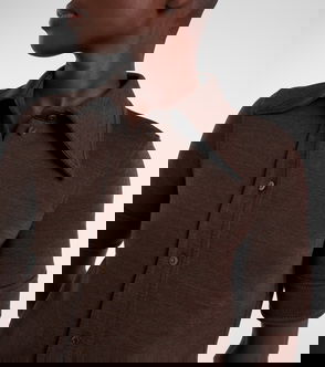 • Relaxed fit, V neck, collar, short sleeves, all-over monogram print, all-over satin texture