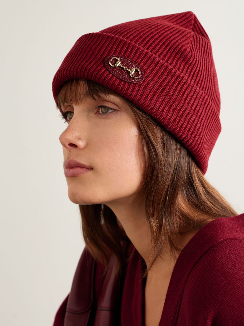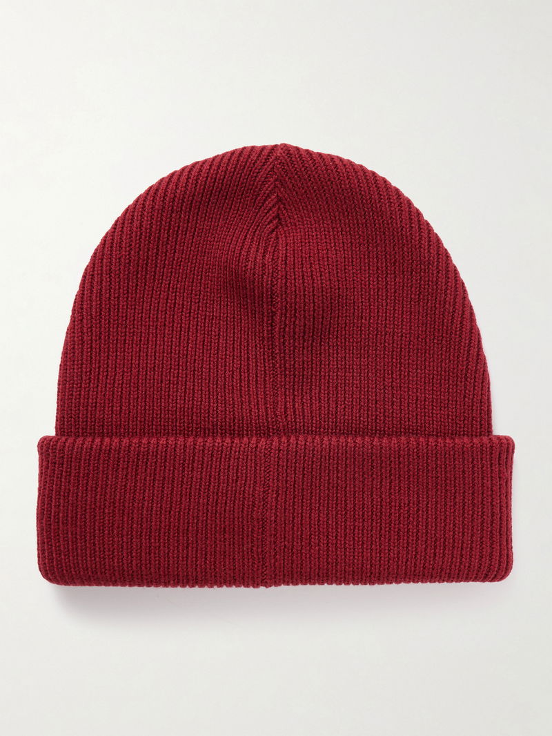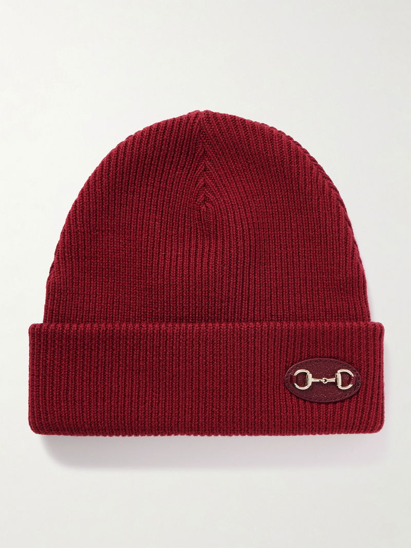 Horsebit-detailed Appliquéd Ribbed Wool Beanie