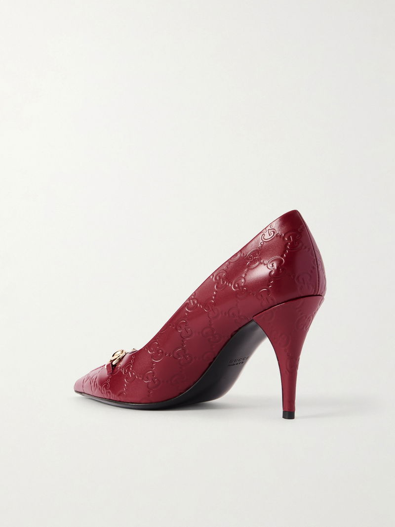 Gucci's pumps feature not one, but two house hallmarks - the iconic 'GG' monogram and horsebit hardware. They're made from debossed leather and have elegant pointed toes and slim tapered heel that offer just enough lift.