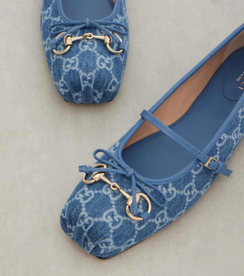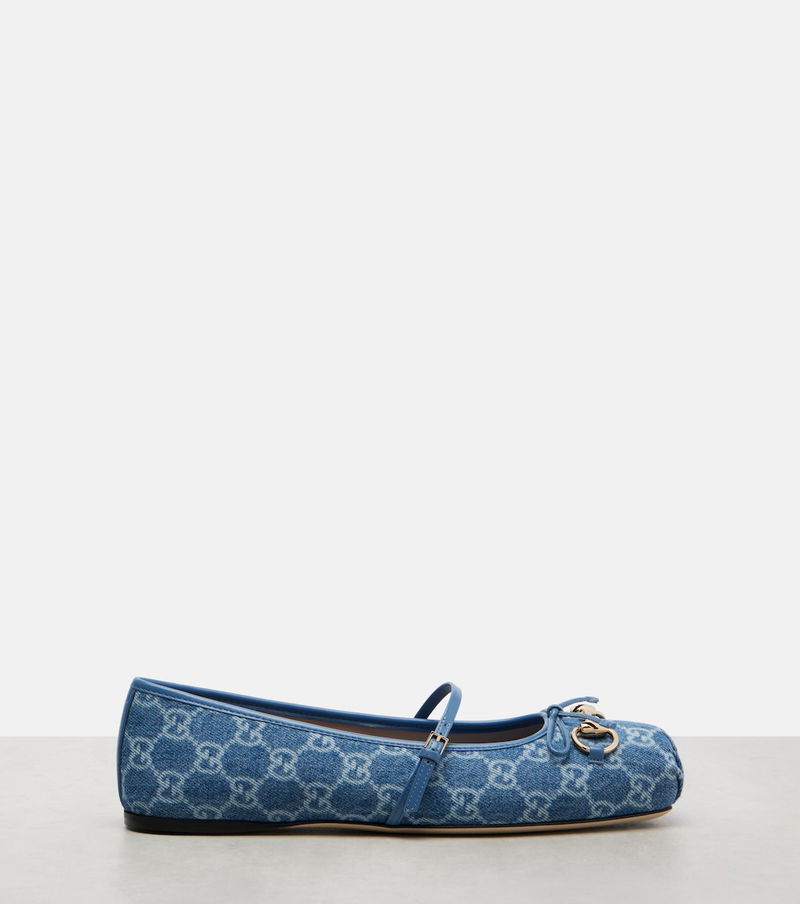 Horsebit GG Denim Ballet Flats