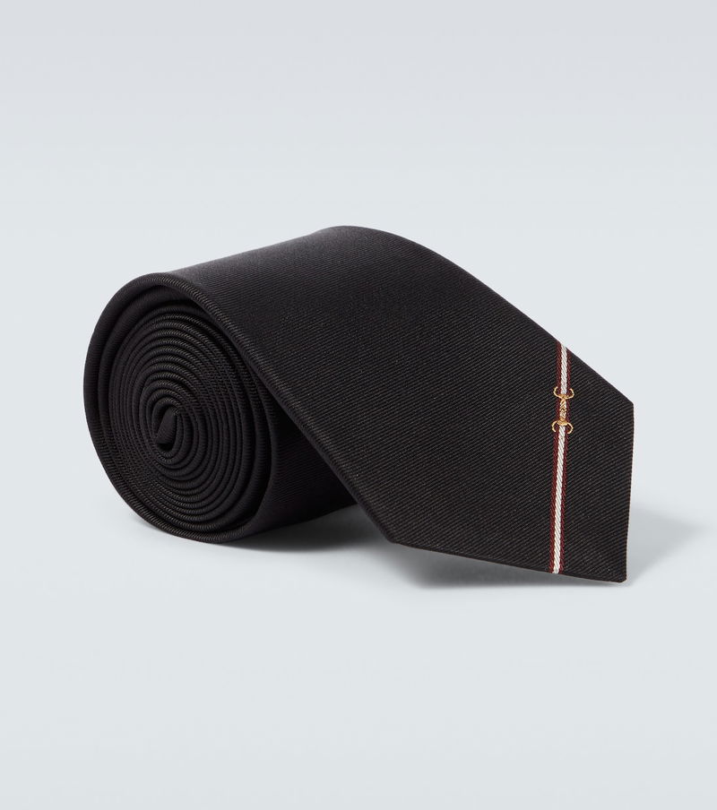 One of Gucci's most powerful emblems, the Horsebit points to the house's storied fascination with equestrian design codes. The signature detail is now showcased as a diagonal jacquard pattern on this tie, complementing its silk construction.