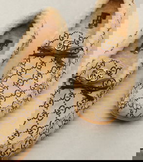 Crafted in Italy from GG Crystal fabric, the Gucci Jordaan loafers from Gucci showcase the brand's Horsebit detail. One of its most powerful emblems, the Horsebit points to the house's storied fascination with equestrian design codes.