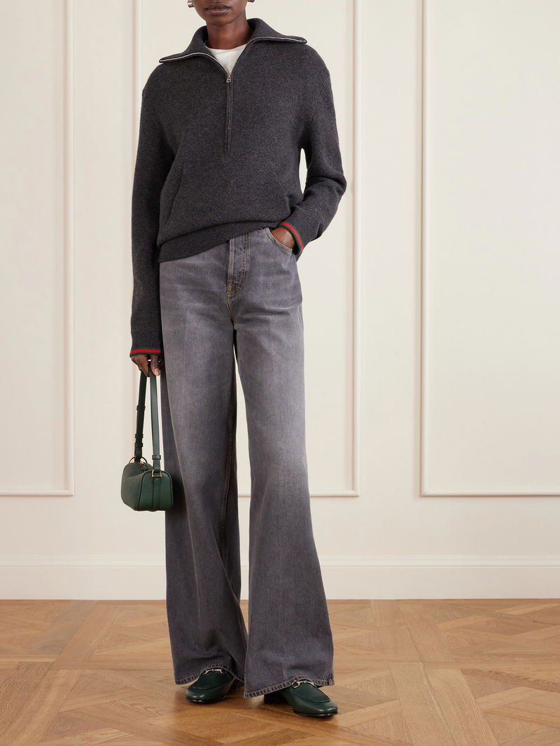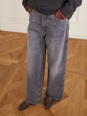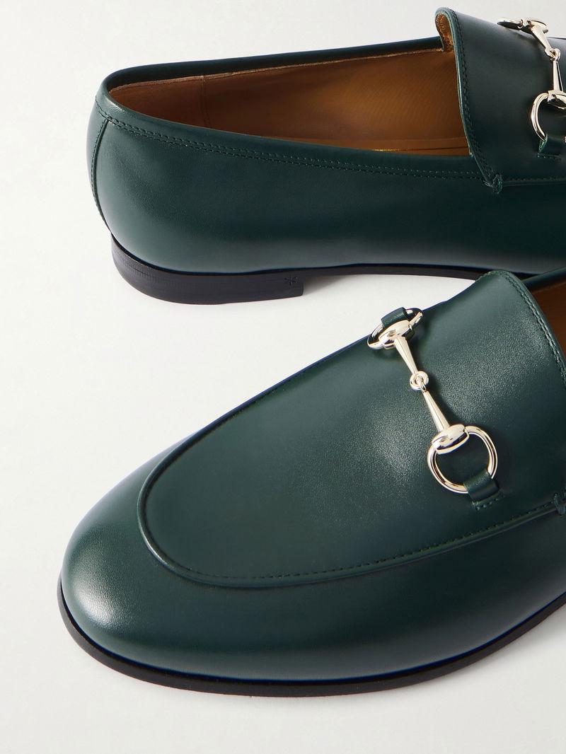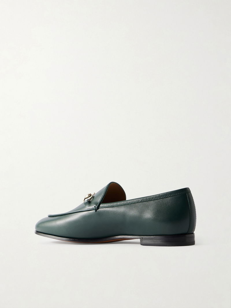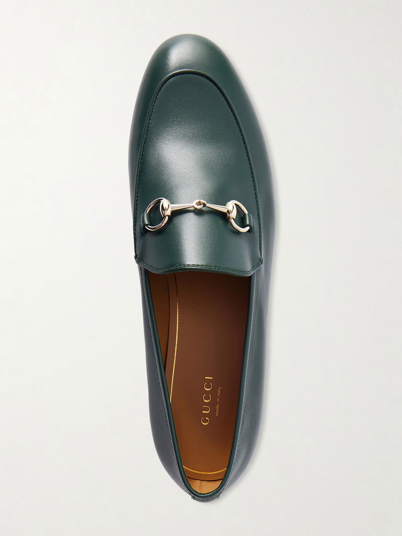 Gucci's iconic 'Jordaan' loafers will work with just about anything in your wardrobe. Crafted from impeccably smooth leather, this pair has a gold horsebit embellishment, a slight heel for lift and sleek almond toe. Wear them to the office with a shirt and culottes, or with a sweater and slim-fit jeans on the weekend.