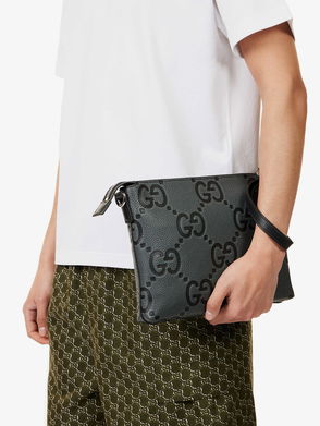 This travel bag from Gucci is your next getaway companion. Made from leather with the Jumbo GG motif for an iconic effect, the design features a shoulder strap, top handles, and internal zipped compartments.