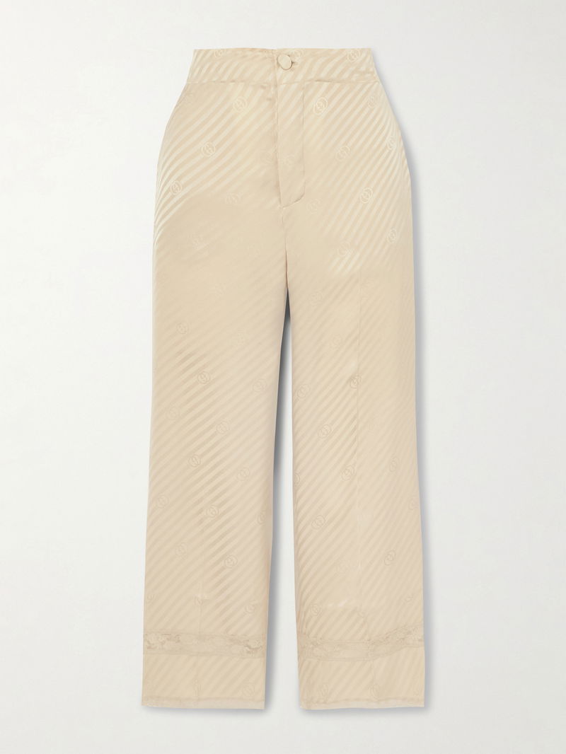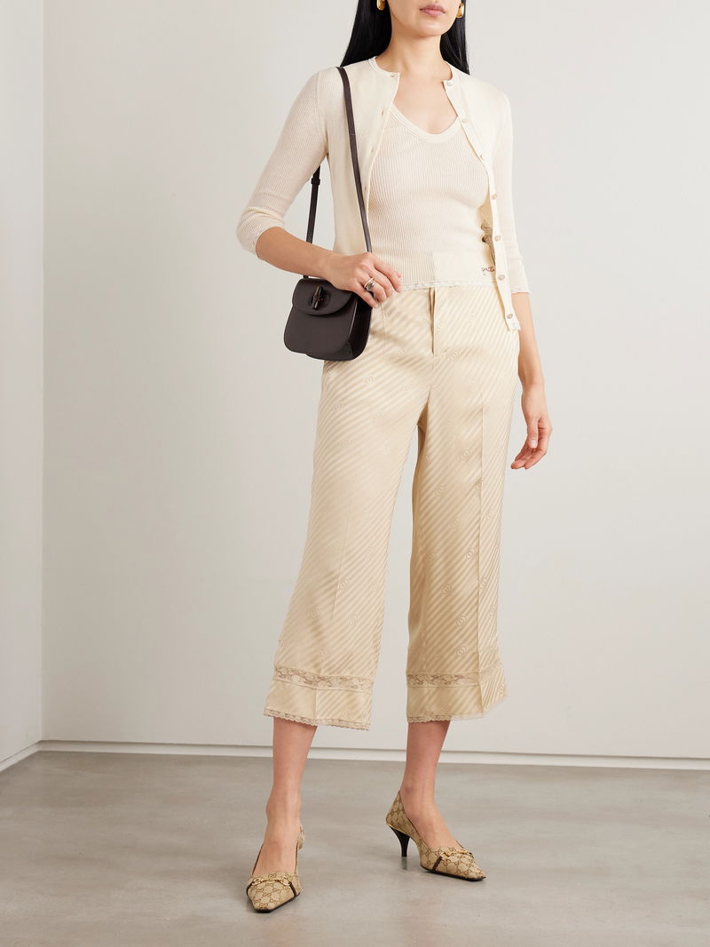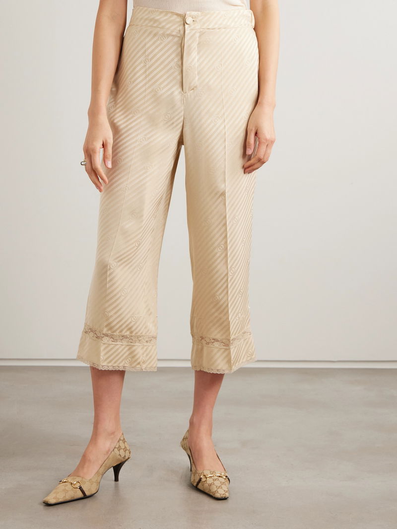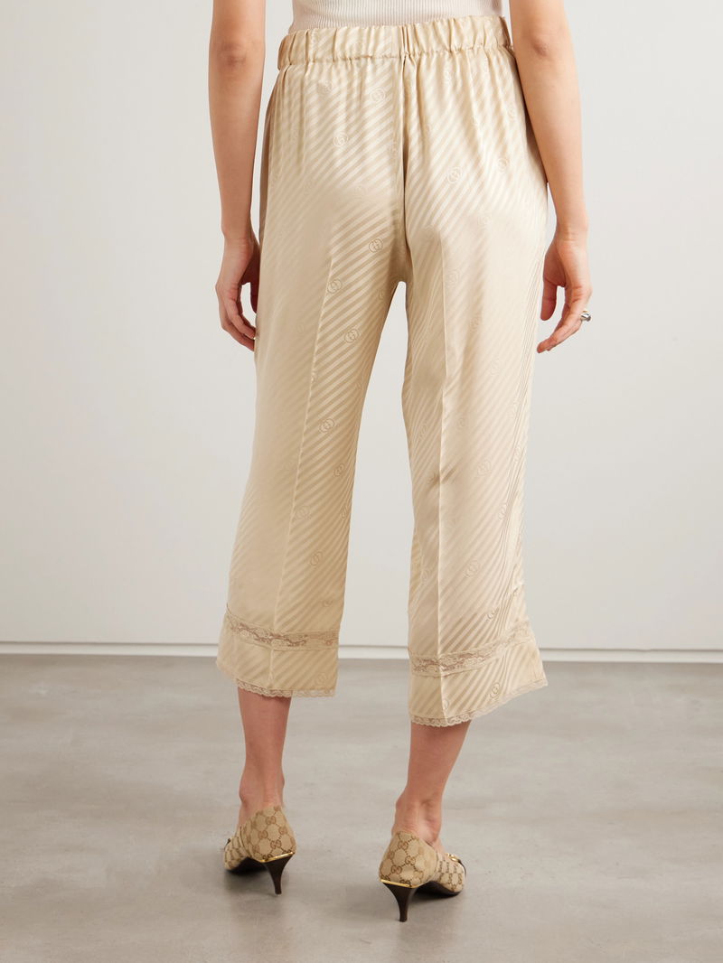 Gucci's pants bring a delicate touch to tailored dressing. They're cut for a straight-leg silhouette from silk detailed with signature 'GG' motifs and trimmed with delicate lace for subtle elegance.
