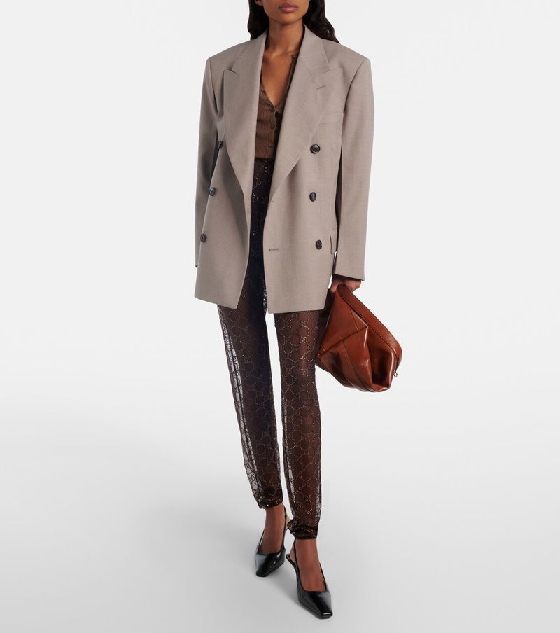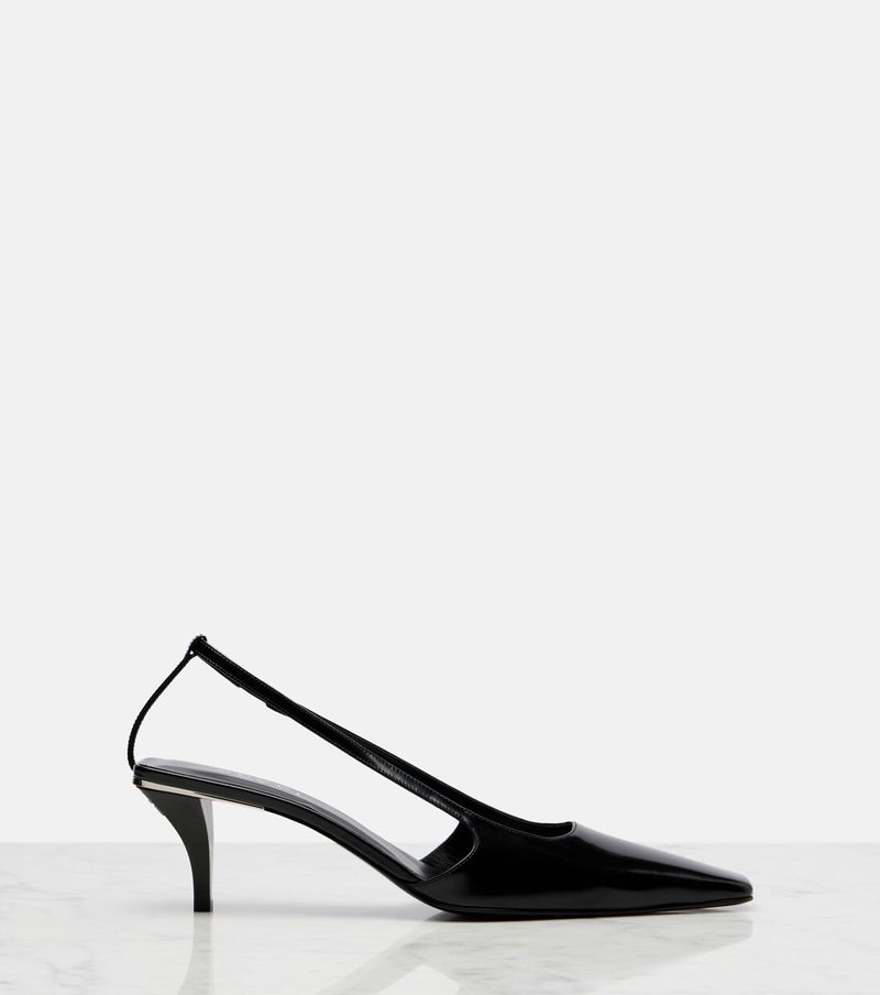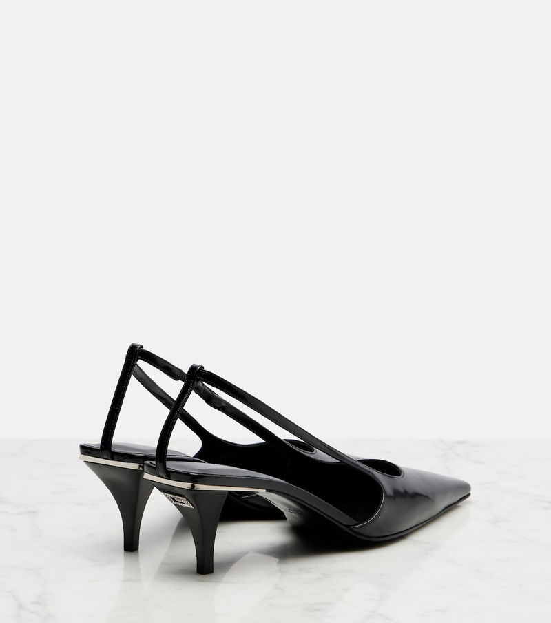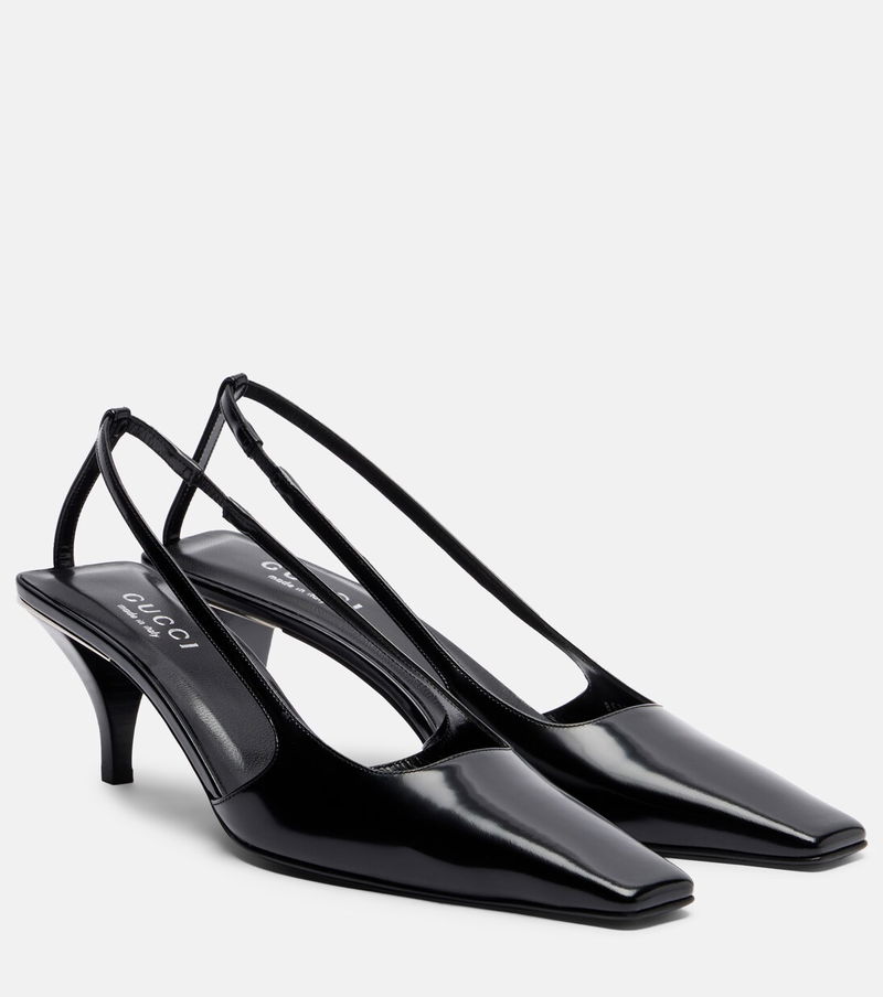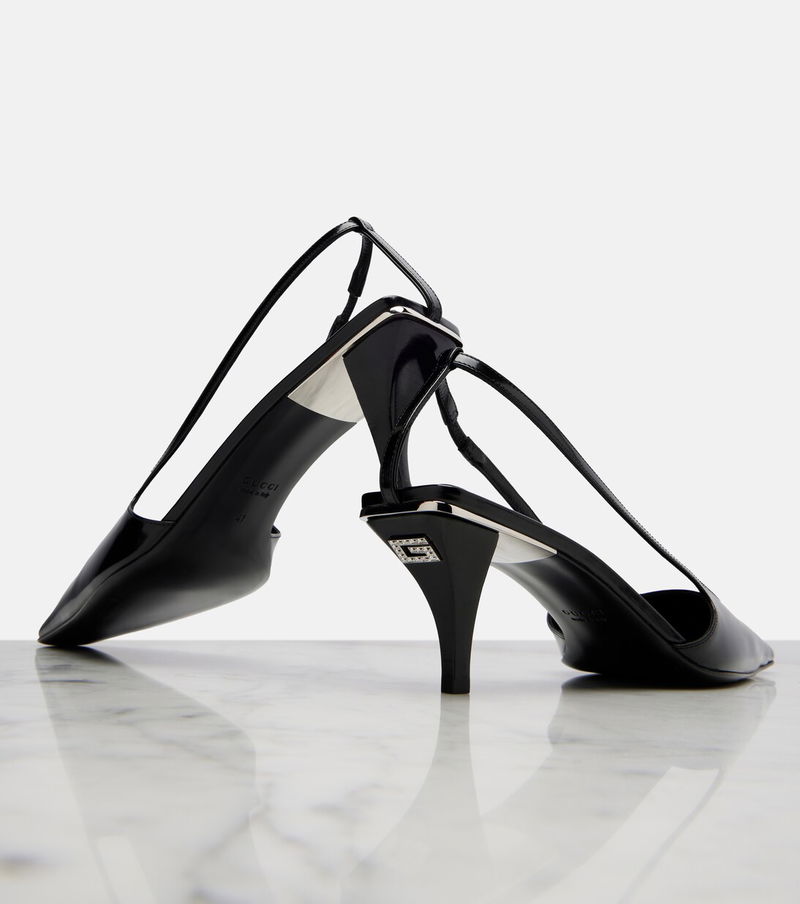 Gucci redefines luxury and pursues its commitment to excellence and creativity. Made from shiny leather, these slingback pumps feature elongated square toes and kitten heels with crystal-embellished logo detailing.