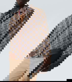Leather-trimmed GG canvas crossbody bag.